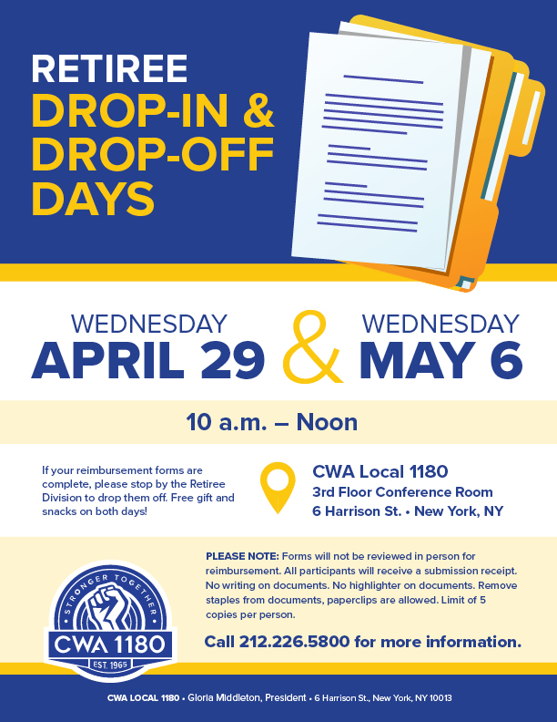 Call the Retiree Division to reserve your spot today: 212.226.5800